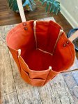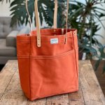 A classically styled project bag crafted from 14 oz duck canvas and vegetable-tanned leather. Designed to stand upright for easy access, with generous front and side pockets to keep tools organized. Hem grommets accommodate yarn or an optional shoulder strap. Accessories shown in product images (yarn tender, tote organizer, etc.) are available separately. Dimensions: 13.5" tall x 11.5" wide x 7" deep Handle Drop: 10.5" Weight: 1.25 lbs